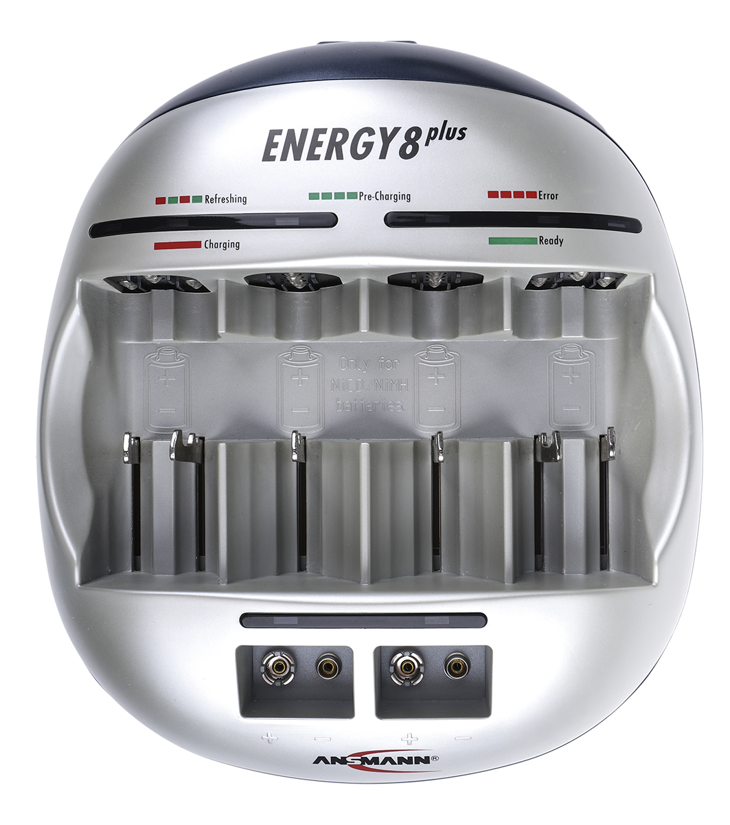 Ansmann Energy 8 er udstyret med en indbygget mikroprocessor der stopper ladningen af batterierne, når de er fuldt opladede. Det betyder at man bare kan lade opladeren lade, uden man behøver at slukke for den. Desuden kan de også teste kapaciteten af batterierne.